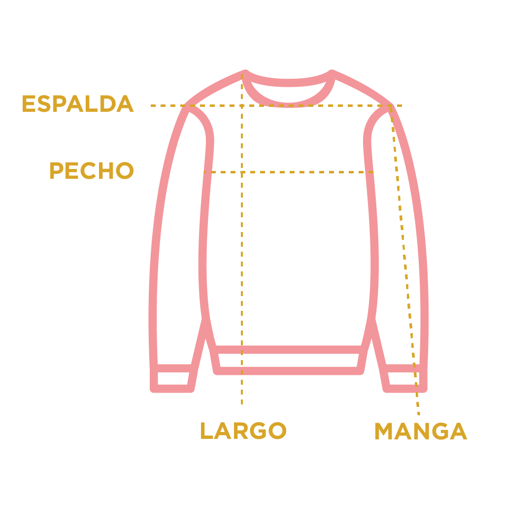 Talla M: Espalda 45cm; Pecho 59cm; Largo 74cm; Manga 68cm